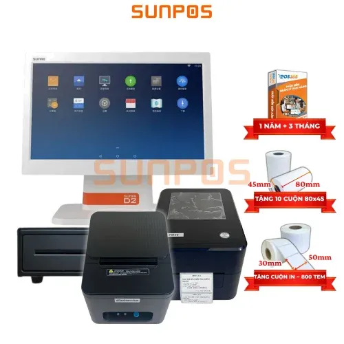 [COMBO] Trọn bộ máy bán hàng (SUNMI D2, Máy in mã vạch, Máy in hóa đơn, Két tiền, POS365) cho quán ăn, nhà hàng, cafe