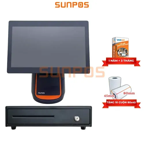 Combo máy POS bán hàng là giải pháp trọn gói giúp tối ưu quy trình thanh toán và quản lý tại quầy thu ngân, bao gồm máy POS cảm ứng SUNMI T1 (Android 6, RAM 2GB – ROM 16GB) với thao tác nhanh, vận hành ổn định, két thu ngân 4 ngăn kẹp chắc chắn cùng phần mềm quản lý bán hàng POS365 hỗ trợ theo dõi doanh thu, hàng hóa và hóa đơn mọi lúc, mọi nơi, chỉ cần lắp đặt là có thể sử dụng ngay, mang lại sự tiện lợi, chuyên nghiệp và hiện đại cho nhiều mô hình kinh doanh như quán ăn, cửa hàng bán lẻ, siêu thị mini và quán cà phê.
